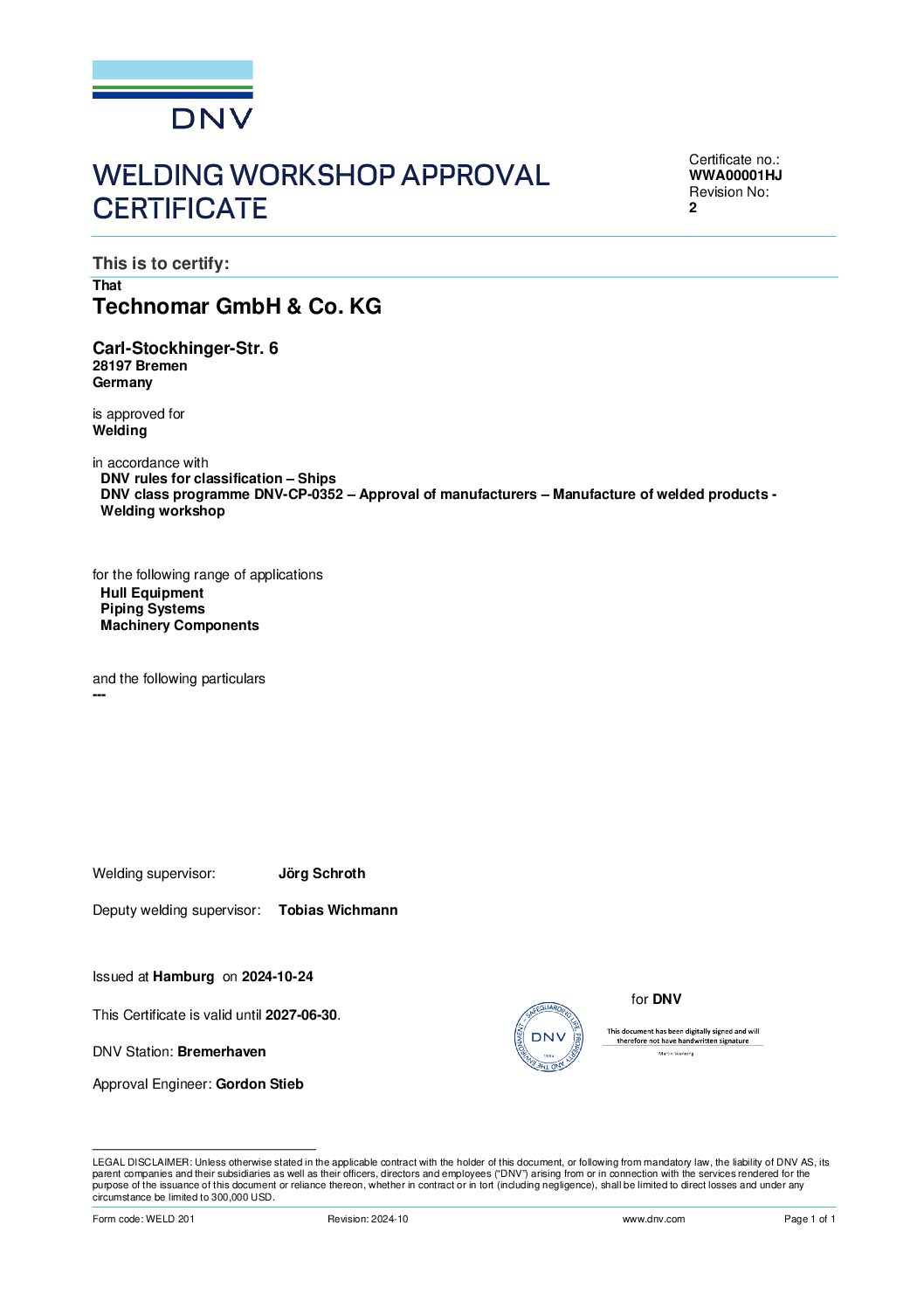 • Schweißzulassung vom DNV